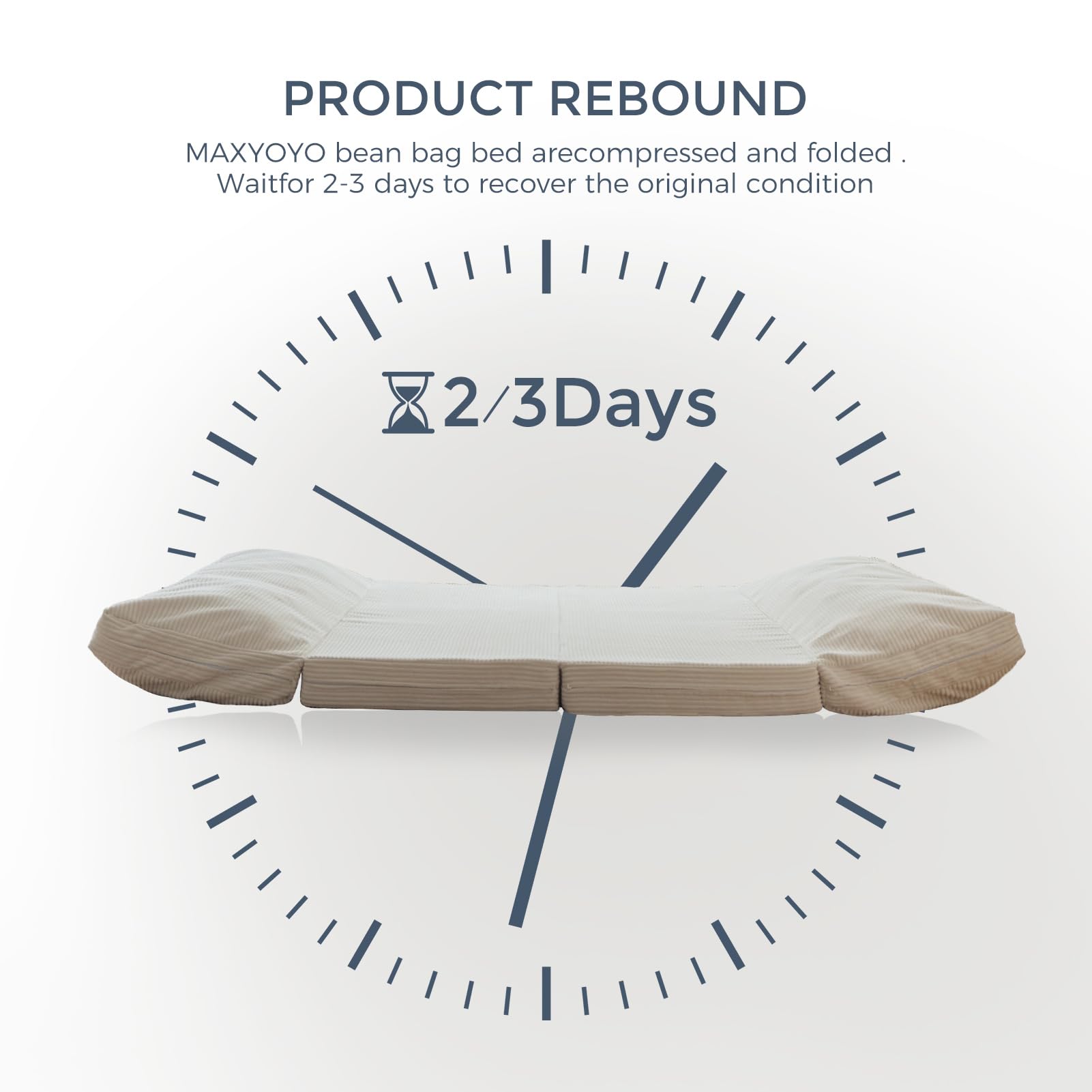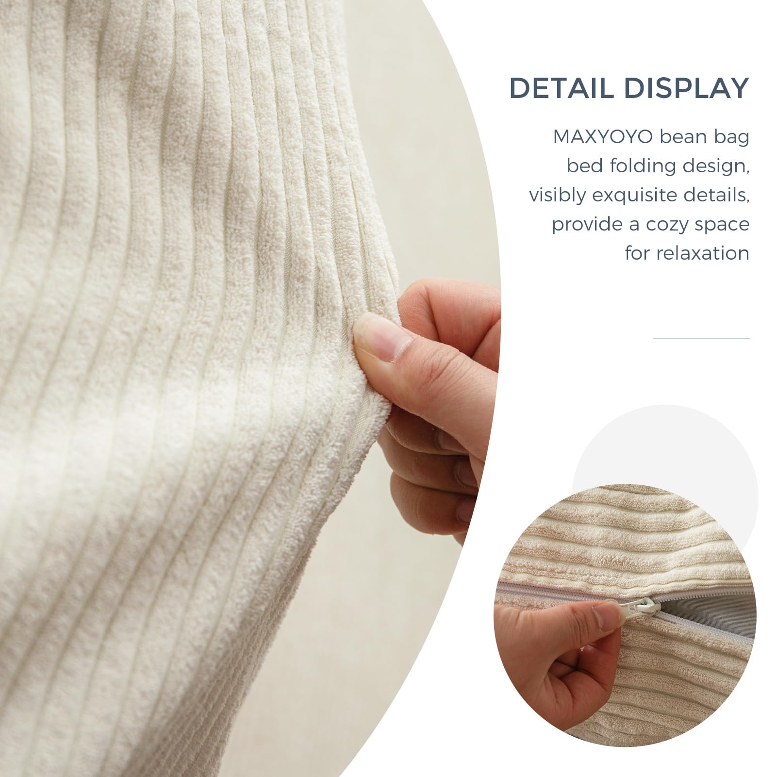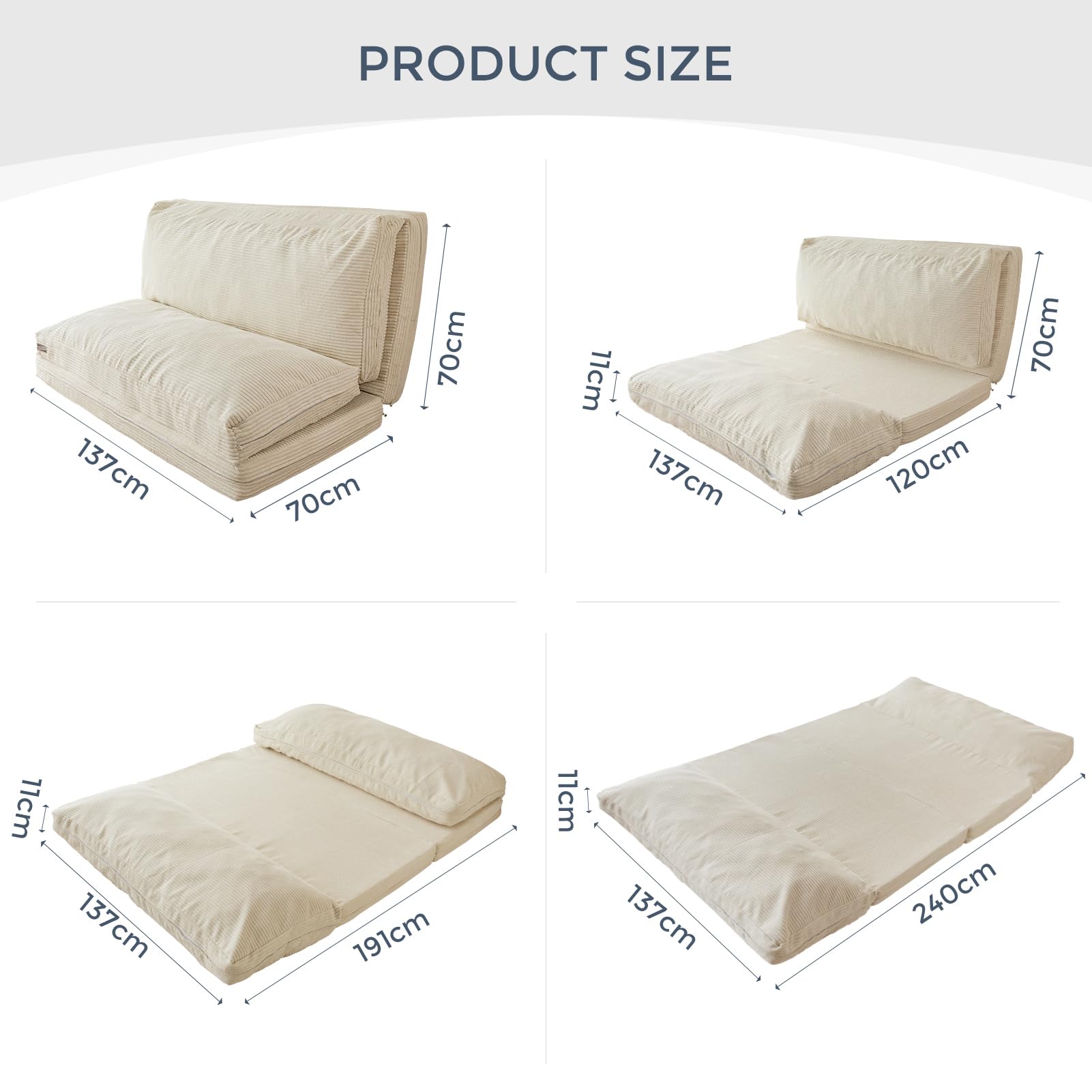 Faltbares Sitzsack-Bett, Cord-Bodenmatratze für Erwachsene, Beige, 135 x 240 cm